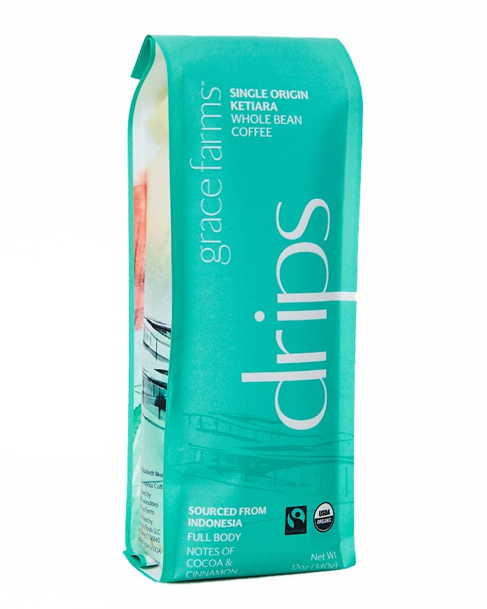 Grace Farms Single Origin Ketiara Whole Bean Coffee from Sumatra Indonesia (12oz Bag)| Fairtrade and Organic | Notes of Cocoa, Cinnamon & Cedar | Dark Roast Coffee Beans | Gives Back 100% of Profits
