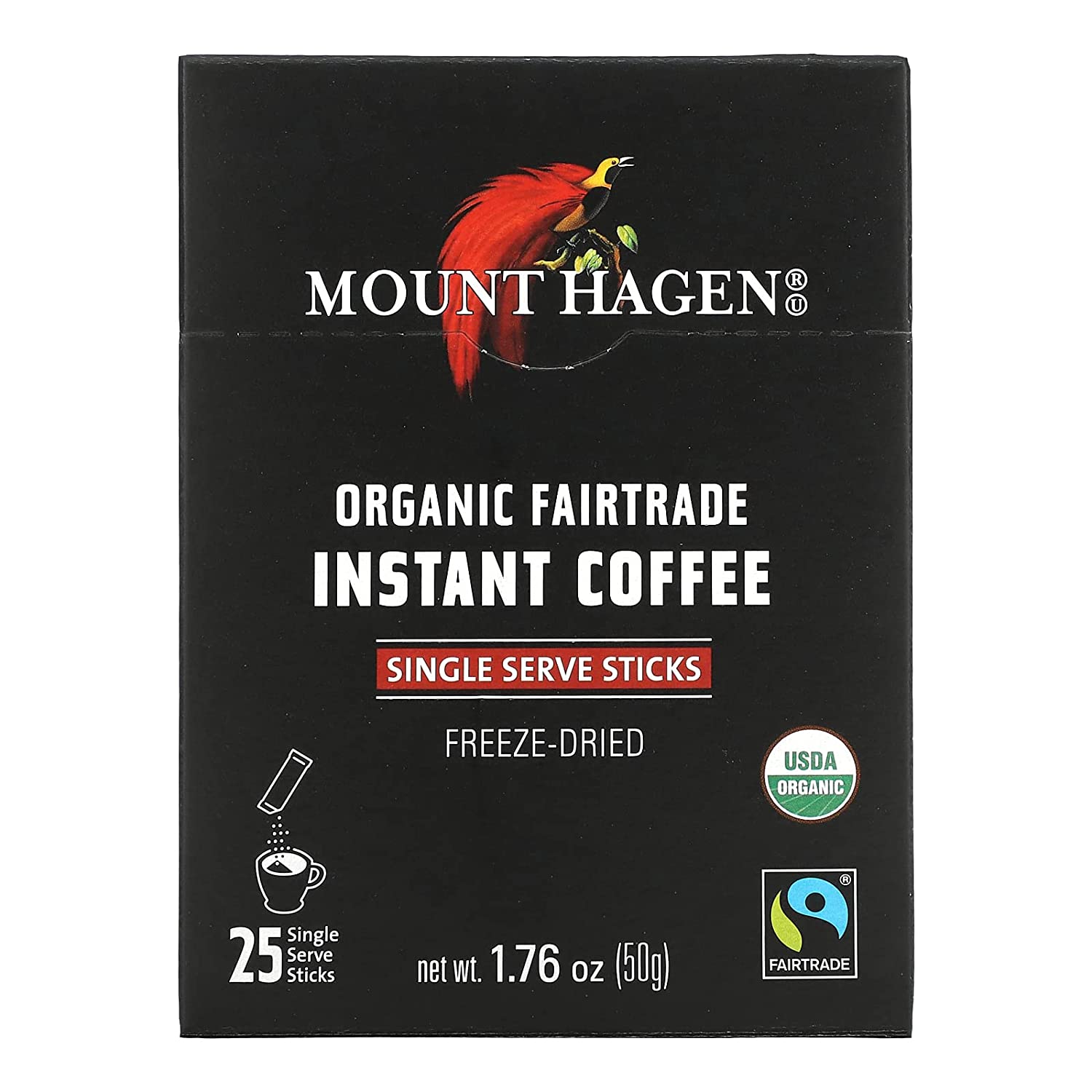 Mount Hagen 25 Count Single Serve Instant Coffee Packets | Eco-friendly Instant Coffee Pouches Made From Organic Medium Roast Arabica Beans | Organic, Fair-Trade Instant Coffee Bags [25 x 1.76oz/50g]