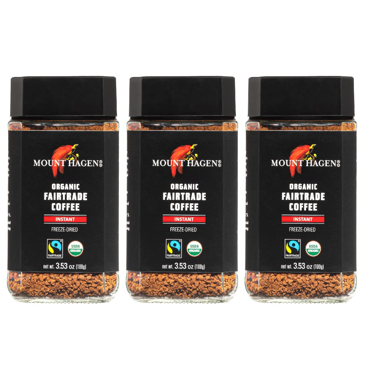 Mount Hagen 3.53oz Organic Freeze Dried Instant Coffee - 3 pack | Eco-friendly Coffee Made From Organic Medium Roast Arabica Beans | Fair-Trade Coffee Instant [3 x 3.53oz Jar]