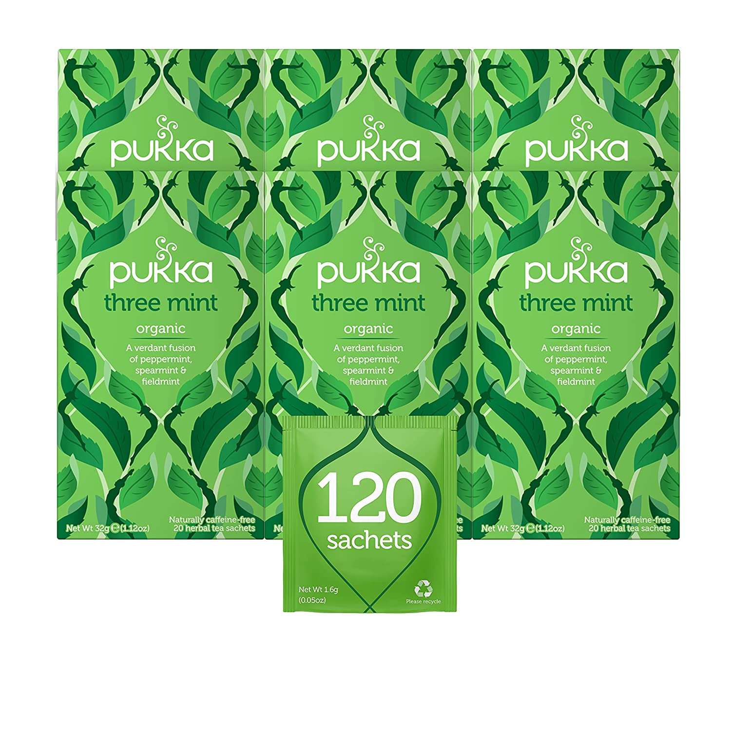 Pukka Organic Tea Bags, Three Mint Herbal Tea, Perfect for Cooling Refresh, 20 Count (Pack of 6) 120 Tea Bags